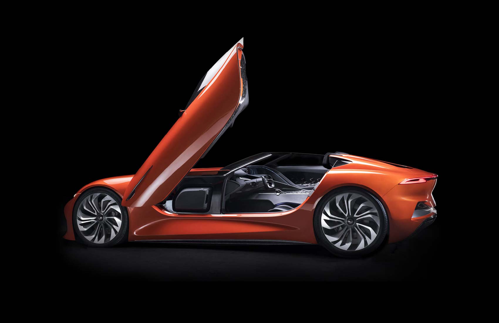 Karma SC1 Vision Concept previews the next-generation human communication interface modules including intelligent interior eye tracking, augmented reality-HUD, biometric identification / facial recognition and ultrasonic sensors for forthcoming autonomous driving features